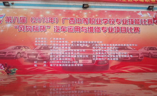 2013328日,珠海龍神有限公司協(xié)辦的第八屆(2013年)全區(qū)中等職業(yè)學校專業(yè)技能比賽,“風向標”杯汽車運用與維修專業(yè)項目比賽廣西賽區(qū)在南寧市第四職業(yè)技術(shù)學校鳴鑼收兵,84人(42組)載譽而歸。